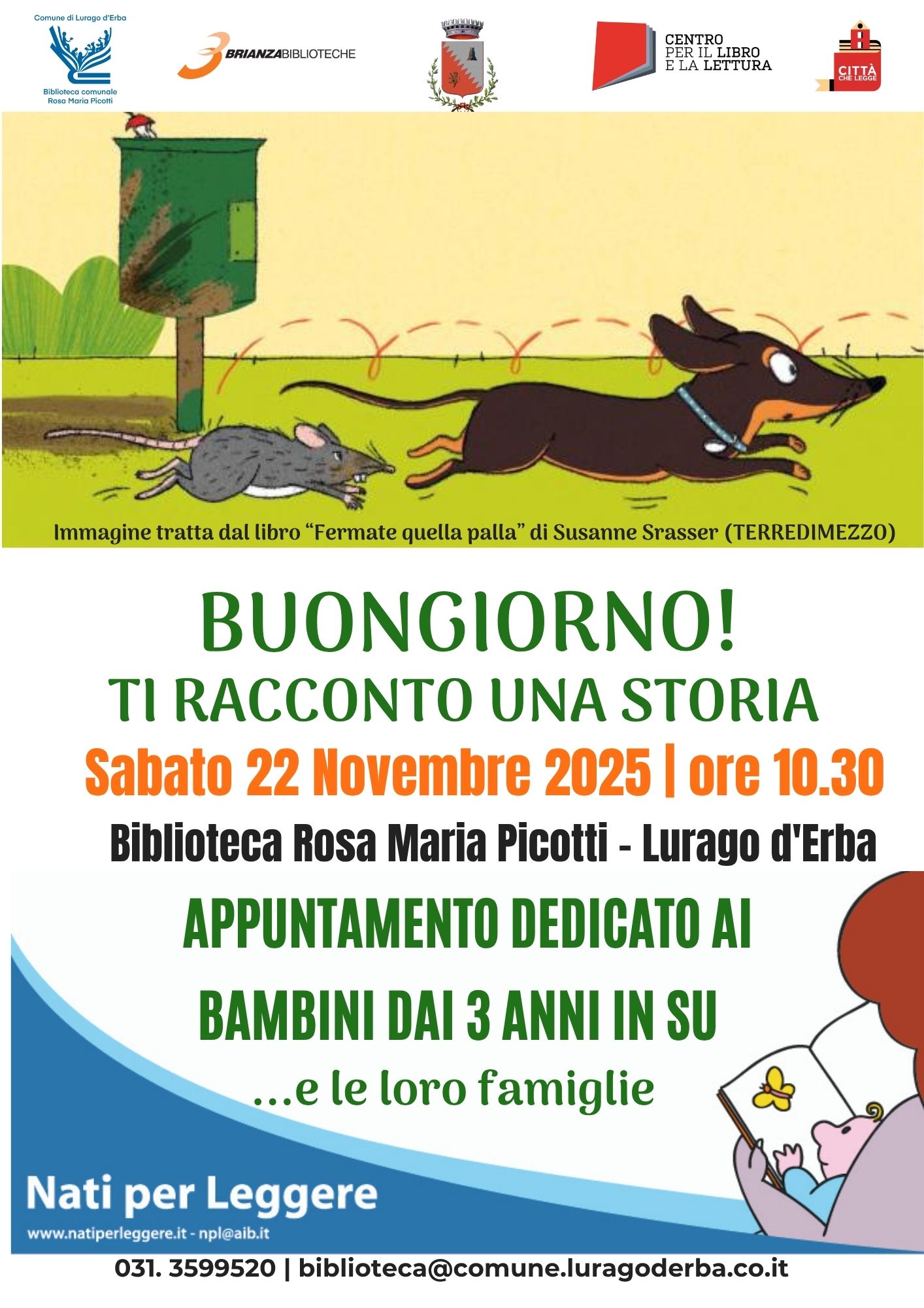 SABATO 22 NOVEMBRE 2025, alle ore 10.30, aspettiamo i bambini dai 3 anni e le loro famiglie per un piacevole momento di lettura condivisa all'aperto presso la Biblioteca comunale.