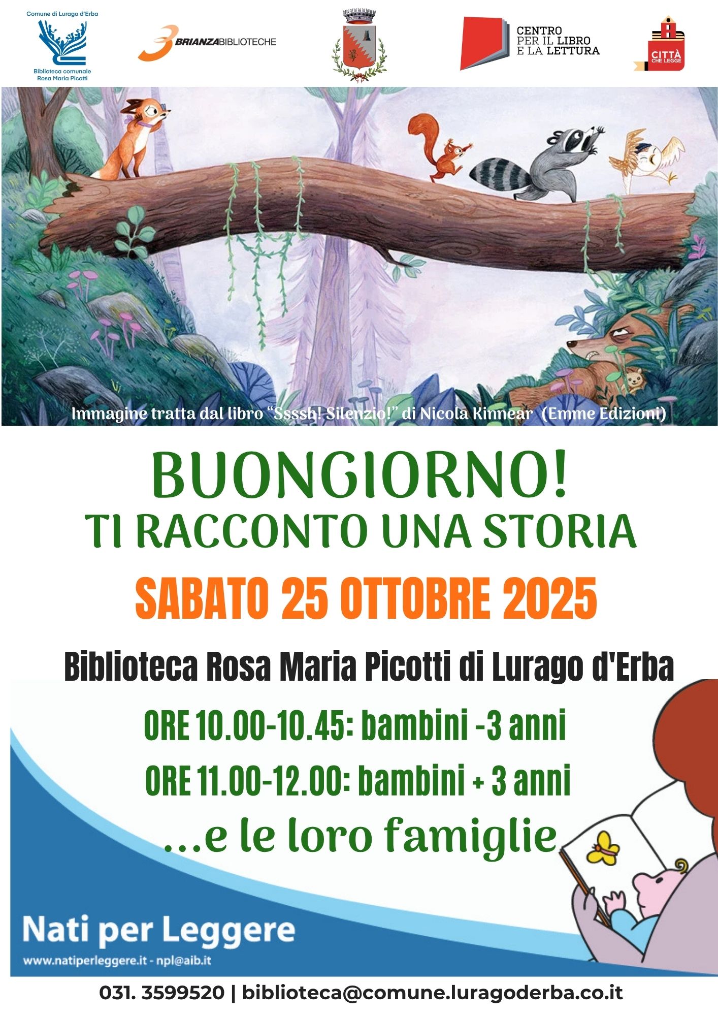 SABATO 21 OTTOBRE 2025, alle ore 10.00 alle ore 12.00, aspettiamo i bambini e le loro famiglie per un piacevole momento di lettura condivisa all'aperto presso la Biblioteca comunale.