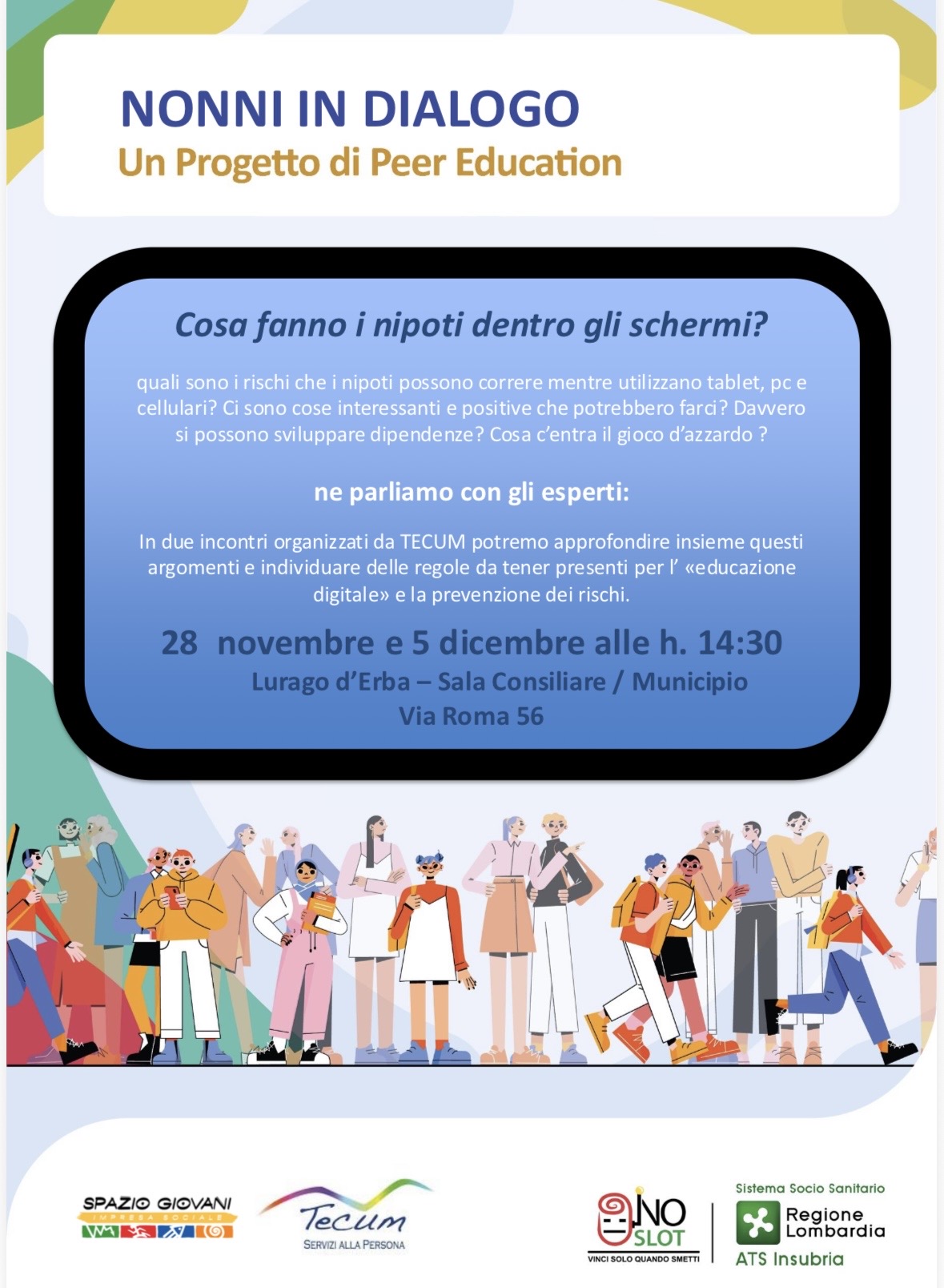 Nell’ambito del progetto GAP, Tecum, insieme alla Cooperativa Spazio Giovani, Auser, e all’Amministrazione Comunale di Lurago d’Erba, invita nonni e nonne (e non solo!) a partecipare a due incontri per scoprire insieme come i più giovani vivono la tecnologia.