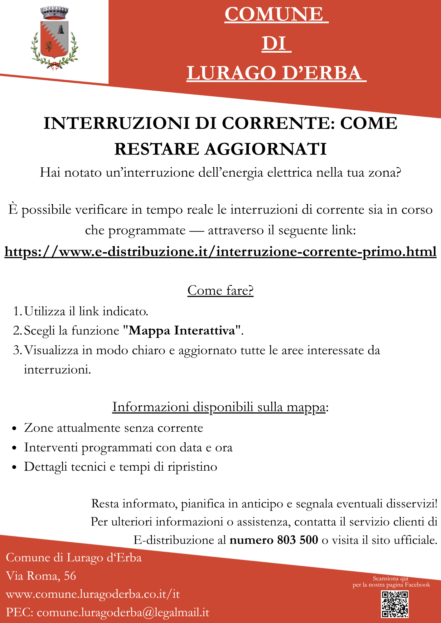 È possibile verificare in tempo reale le interruzioni di corrente sia in corso che programmate — attraverso il seguente link: https://www.e-distribuzione.it/interruzione-corrente-primo.html