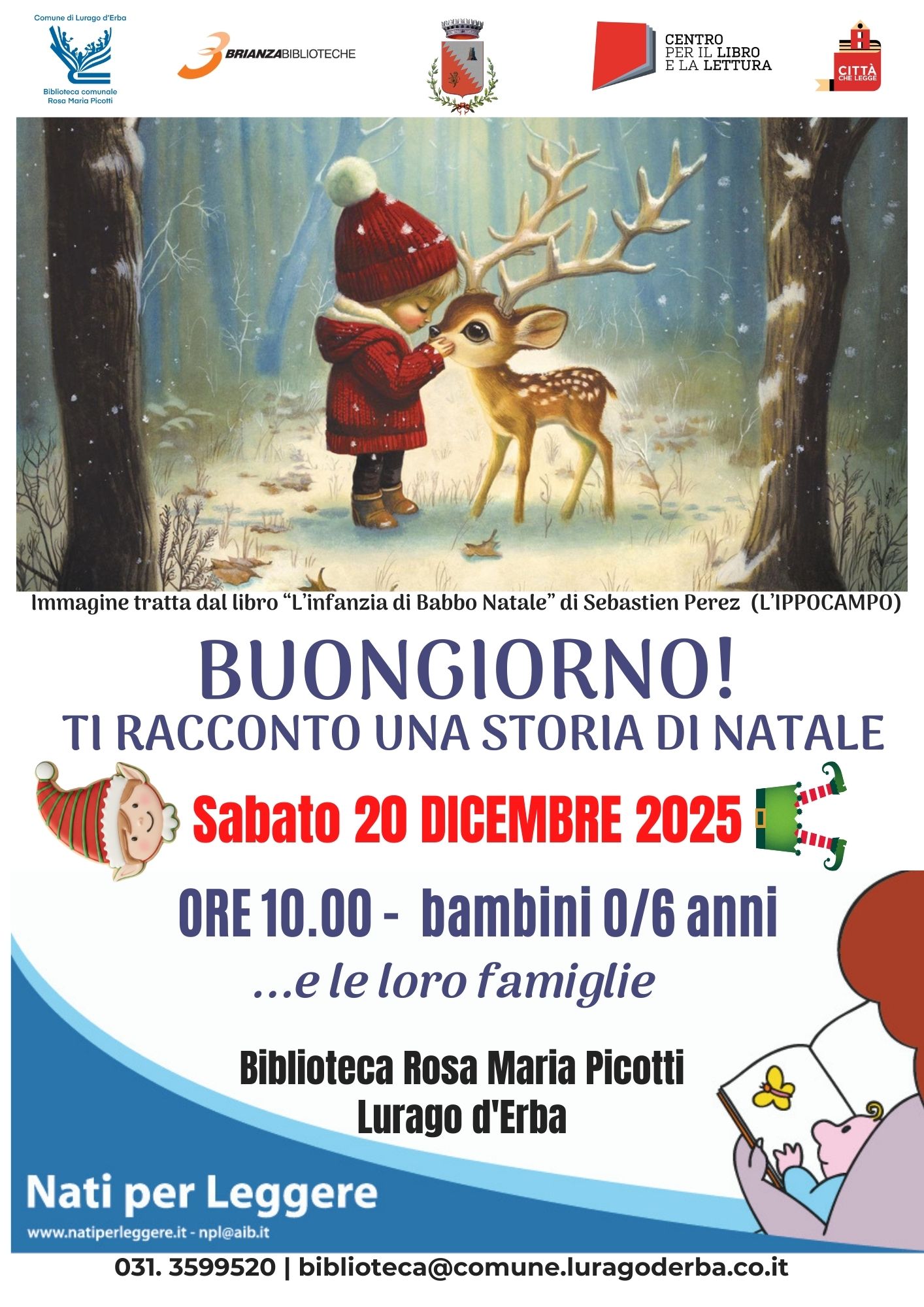 SABATO 20 DICEMBRE 2025, alle ore 10, aspettiamo i bambini da 0 a 6 anni e le loro famiglie per un piacevole momento di lettura presso la biblioteca comunale