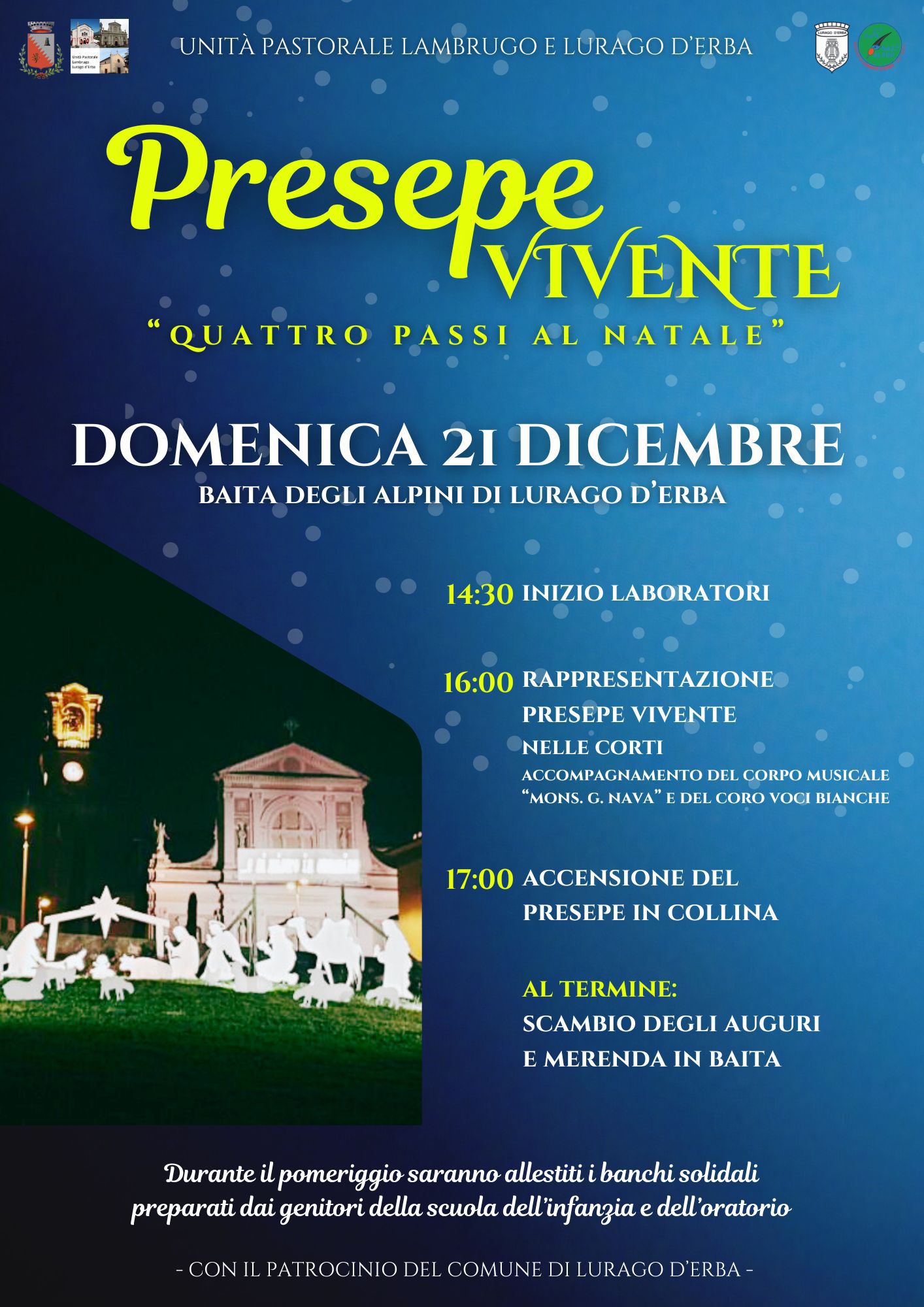 L’Unità Pastorale Lambrugo e Lurago, con il patrocino del Comune di Lurago d’Erba e in collaborazione con il Gruppo Alpini, il Corpo Musicale e il coro voci bianche, organizza un pomeriggio animato in attesa del Natale.